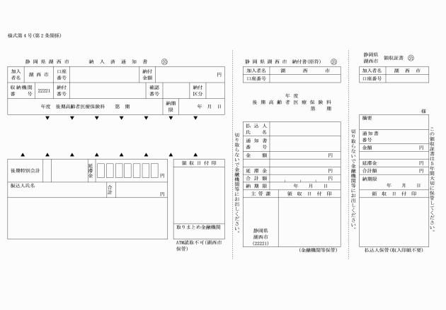 第2条 法第107条第1項及び条例第3条第2項の規定による保険料に関する通知書及び納付書は、次に定めるものとする。