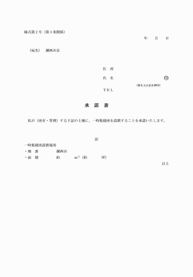 (2) 一時集積所を設置する場所の土地の所有者等の承諾書(様式第2号)