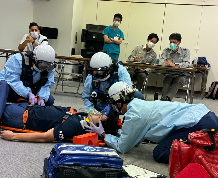 救急隊員が医師・看護師と合同訓練を行うことにより、救急隊員の知識及び技術の向上を図り、緊急時における医療機関との連携強化、傷病者搬送体制のさらなる迅速化・円滑化を目的に訓練を実施しました。