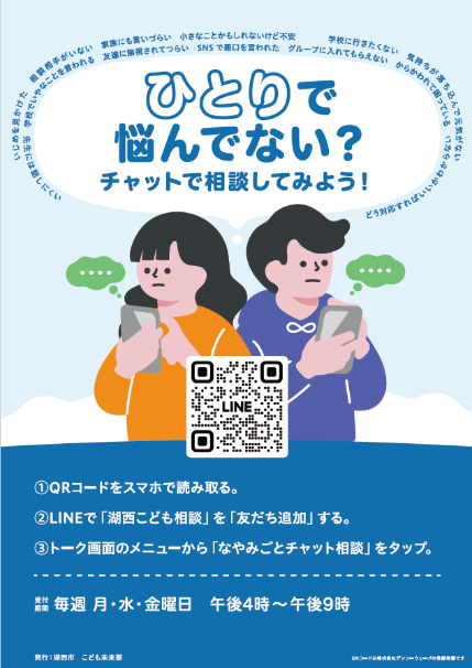 湖西こども相談はこちら(専用フォームに遷移します。LINE上で友達追加が必要です。)