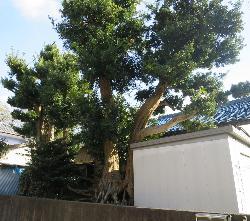 旧道の両側に生い茂る大きな槇の木が目に入ります。これは火防樹と呼ばれ、火事の延焼を食い止めるために植えられたものです。白須賀宿の民家は軒が連なり、延焼しやすい町並みでした。