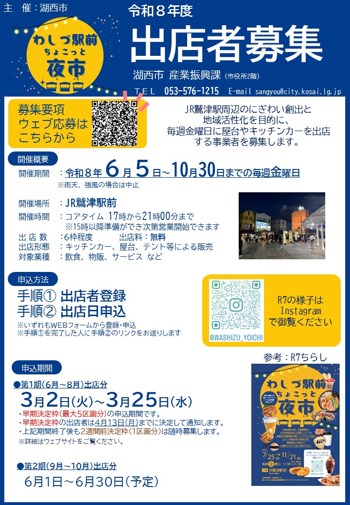 わしづ駅前 ちょこっと夜市出店者募集