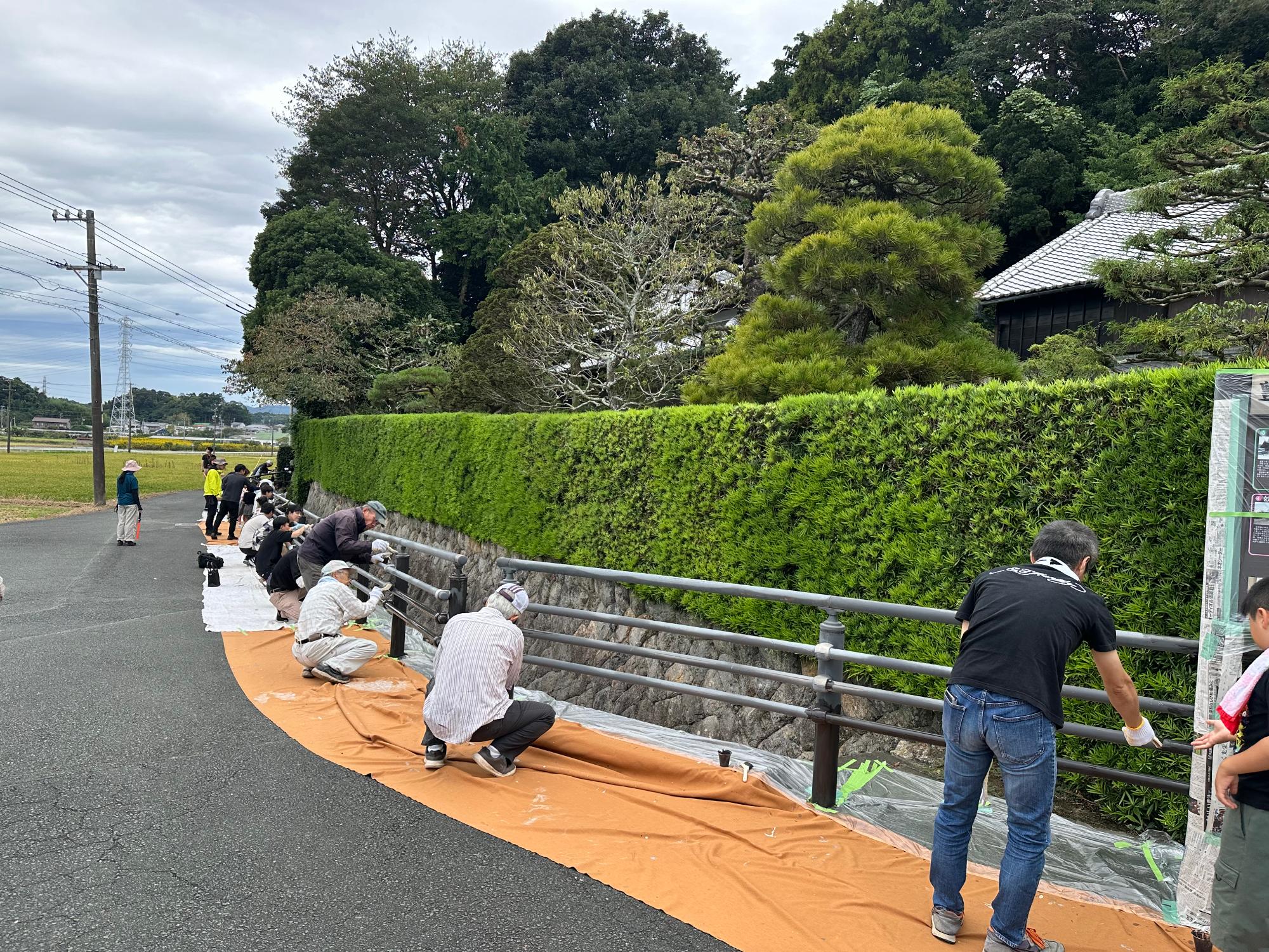 推進会議の職員に加え山口自治会・トヨタグループ湖西4社会・豊田佐吉記念館保存会の方々、そしてジャパンカーボライン株式会社さん・株式会社協伸さんにも協力いただき、総勢50人近くで修景を行いました!
